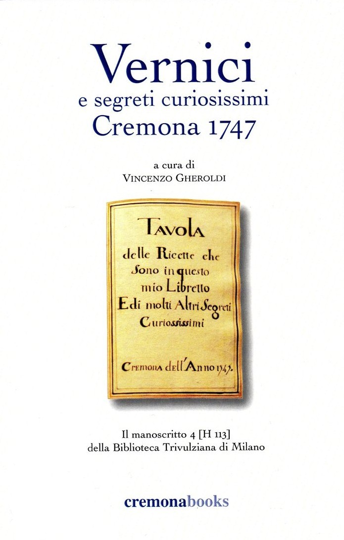 A Cremona, 1747, viene realizzata un'interessante raccolta di ricette. Fra le diverse istruzioni radunate in questo ricettario compare un'importante sezione dedicata ai colori e alle vernici che documenta aspetti originali del sapere tecnico settecentesco. Intorno a questo nucleo di ricette si sono sviluppati gli studi che compongono questo libro. Anzitutto viene indagato l'ambiente culturale dei dilettanti settecenteschi autori di ricettari artistici, con particolare riferimento ai loro gusti e alla loro specifica competenza tecnica per le vernici da pittura, per le cosidette "vernici cinesi" e per la miniatura. Inoltre con due saggi specifici, vengono studiati due ulteriori aspetti degli interessi settecenteschi per le vernici: le vernici elaborate dai liutai, delle quali a Cremona si sono presentate soluzioni ancora insuperate, e le vernici destinate al restauro dei dipinti.