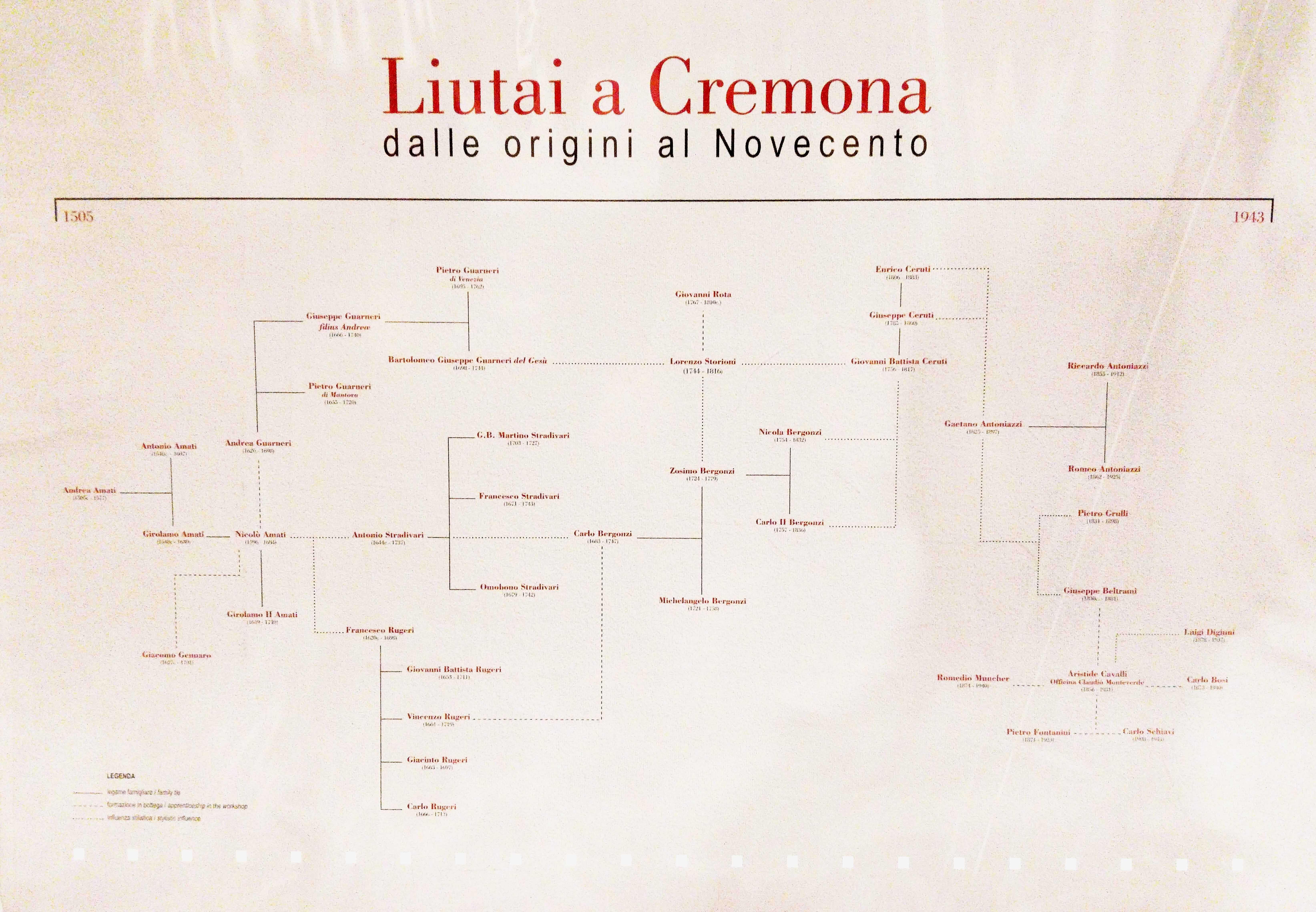 Poster: Albero genealogico delle famose famiglie di liutai attivi a Cremona dal 1505 al 1943