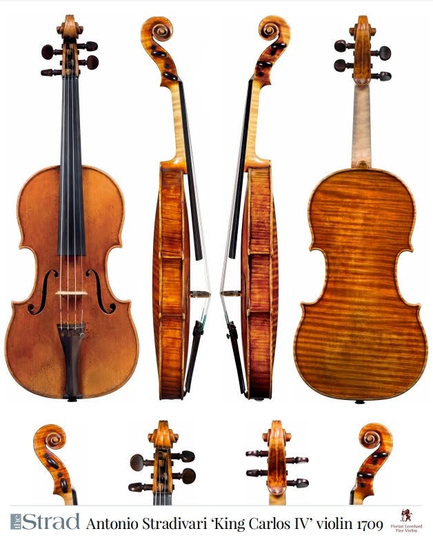 Il "Re Carlos IV" è uno dei pochi strumenti rimasti della collezione del re spagnolo che regnò dal 1788 al 1808. Realizzato durante il "periodo d'oro" di Stradivari, è uno dei rari esemplari così ben conservati ed il suono è raramente eguagliato da altri violini dell'epoca. Il fondo in acero ha marezzature profonde e larghe che scendono leggermente e che brillano come acqua alla luce. La testa è incredibilmente rotonda ed audace, mostrando una forza estrema nella realizzazione.