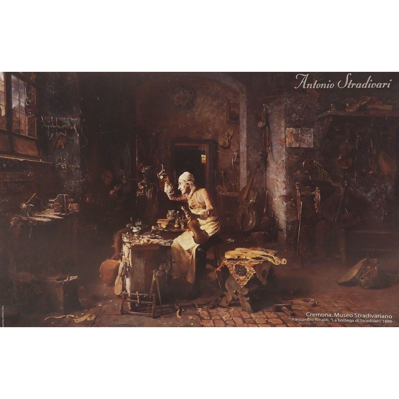 Riproduzione del quadro di Antonio Rinaldi "Il liutaio italiano Stradivari (Antonio Stradivari) (1644-1737) nella sua bottega" (1886, Cremona, Museo Civico)